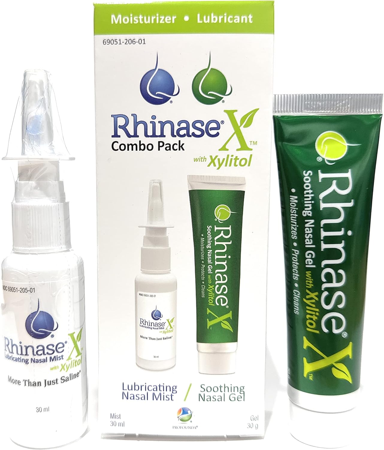 New:Rhinase X Combo Pack - Nasal Gel (30g) & Spray (30ml) for Complete Nasal Relief: Dryness, Congestion, Post Nasal Drip, and Allergies. Retain Moisture, Protect Against Moisture Loss and xylitol